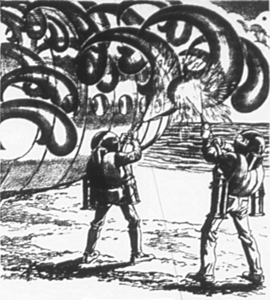 Several of the things were detaching themselves from the ship, and instinctively, I turned the spray upon them. Hendricks, I could see out of the corner of my eye, did likewise. And now a most amazing thing happened.