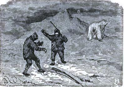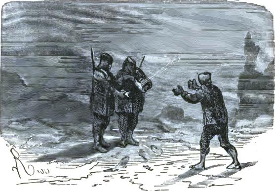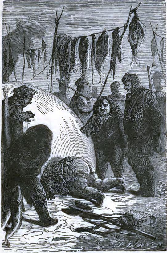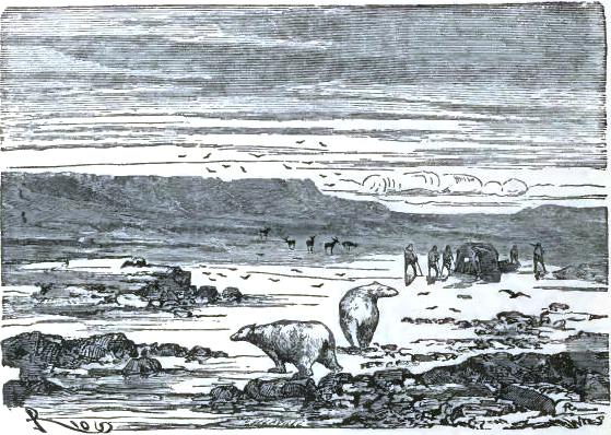 They were dying of hunger; they had not eaten for forty-eight hours, and their last meal had been the flesh of their last Esquimaux dog. Bell could go no farther, and old Johnson felt ready to die. They were on the shore of Baffin's Bay, on the way to Europe. Three miles from land the waves were breaking on the edges of the ice-field. They had to await the uncertain passage of a whaler, and how many days yet?