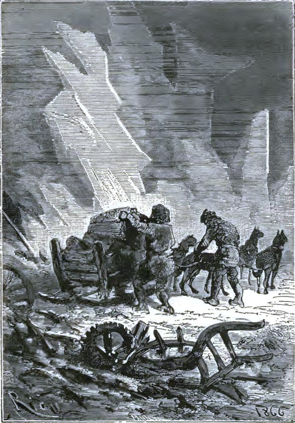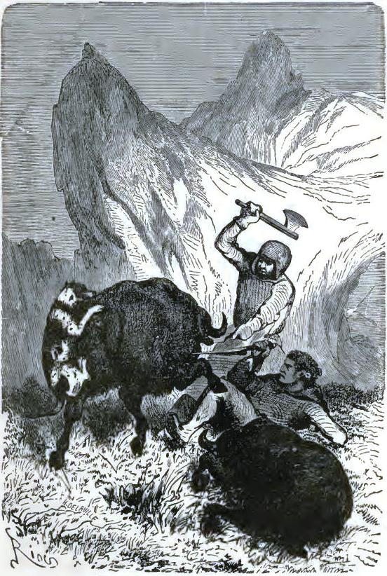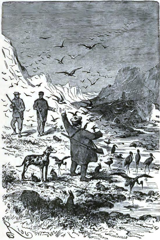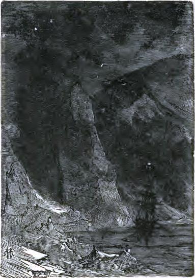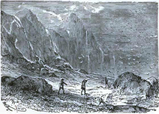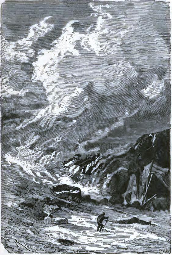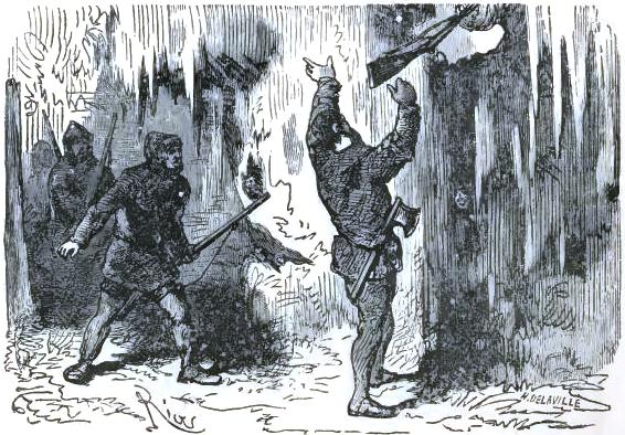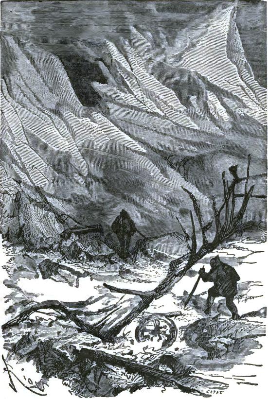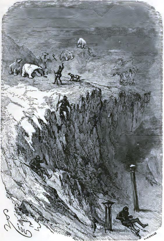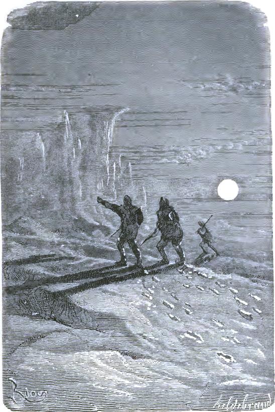 The American durst not finish his sentence,* but his face expressed clearly his horror. The doctor, Johnson, Bell, aroused by this incident, were able to rise, and drag themselves along in Altamont's footprints to the part of the plain to which he had pointed. They soon reached a narrow space, at the bottom of a deep ravine, and there a terrible sight met their eyes.