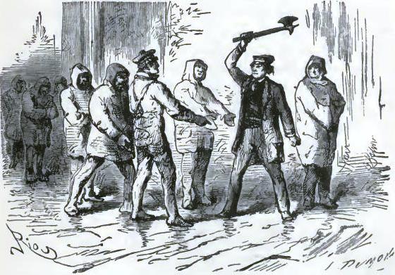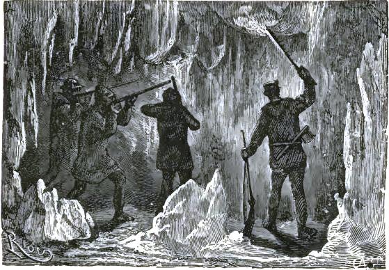 This ravine had been the scene of the last struggle between the men and the climate, despair, and hunger, for from some horrible signs it was easy to see that they had been obliged to eat human flesh. Among them the doctor had recognized Shandon, Pen,* and the wretched crew of the Forward; their strength and food had failed them; their launch had probably been crushed by an avalanche, or carried into some ravine, and they could not take to the open sea; probably they were lost among these unknown continents. Besides, men who had left in mutiny could not long be united with the closeness which is necessary for the accomplishment of great things. A ringleader of a revolt has never more than a doubtful authority in his hands. And, without doubt, Shandon was promptly deposed.