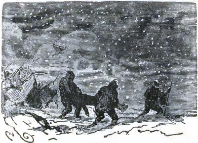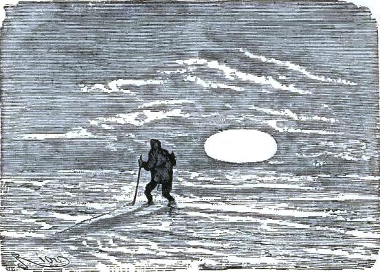 The nature of the ground added much to the fatigue of the journey; North Devon was far from level; they had to cross the Trauter Mountains by almost impassable ravines, struggling against all the fury of the elements. The sledge, men, and dogs had to rest, and more than once despair seized the little band, hardened as it was to the fatigues of a polar journey. But, without their noticing it, these poor men were nearly worn out, physically and morally; they could not support such incessant fatigue for eighteen months with impunity, nor such a succession of hopes and despairs. Besides, it should be borne in mind that they went forward with enthusiasm and conviction, which they lacked when returning. So they with difficulty dragged on; they walked almost from habit, with the animal energy left almost independent of their will.