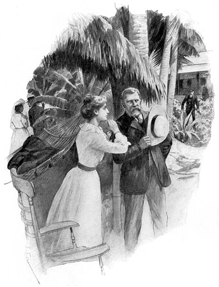 "Mister Jacob," said I, for, little man that he was, he had a big wit in his own way, "the lady would be very glad to get out of the way of the reef, I'm thinking. However, that's for the morning. Here's Peter Bligh as pleased as any school-boy at the sight of land. Tell him that he isn't going ashore to-night, and he'll thank you nicely. Eh, Peter, are you, too, of Jacob's mind? Is it sea or shore, a glass in my cabin or what the natives will sell you in the log-cabins over yonder?" Peter Bligh shut up his glass with a snap.