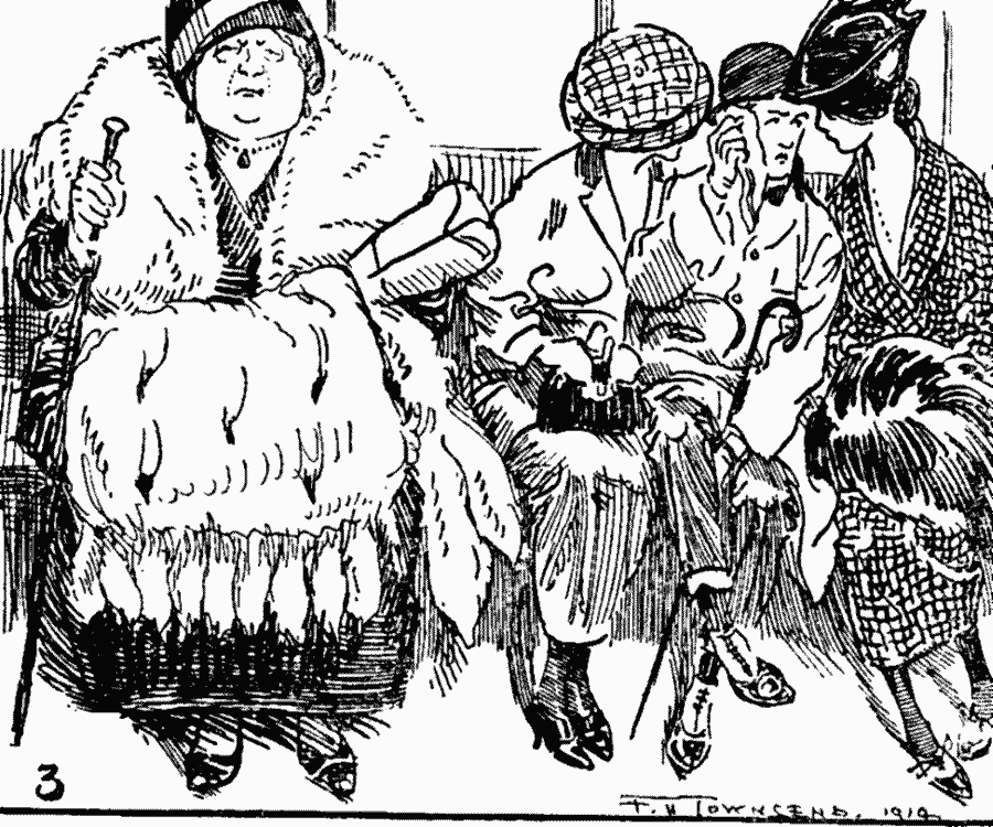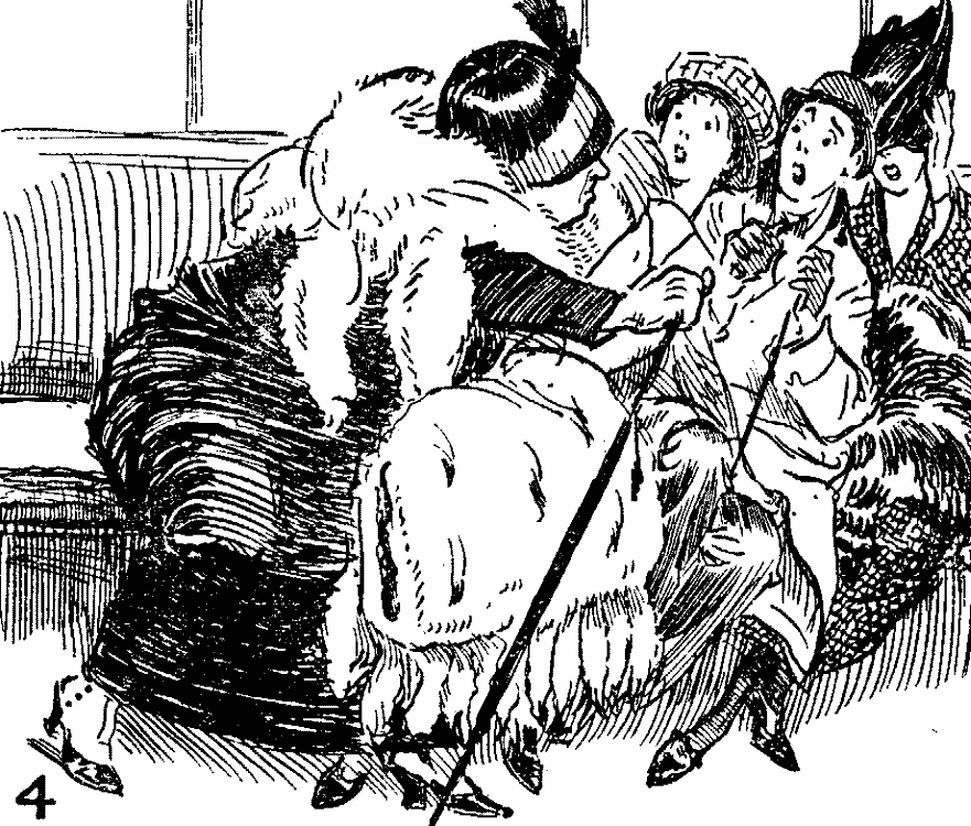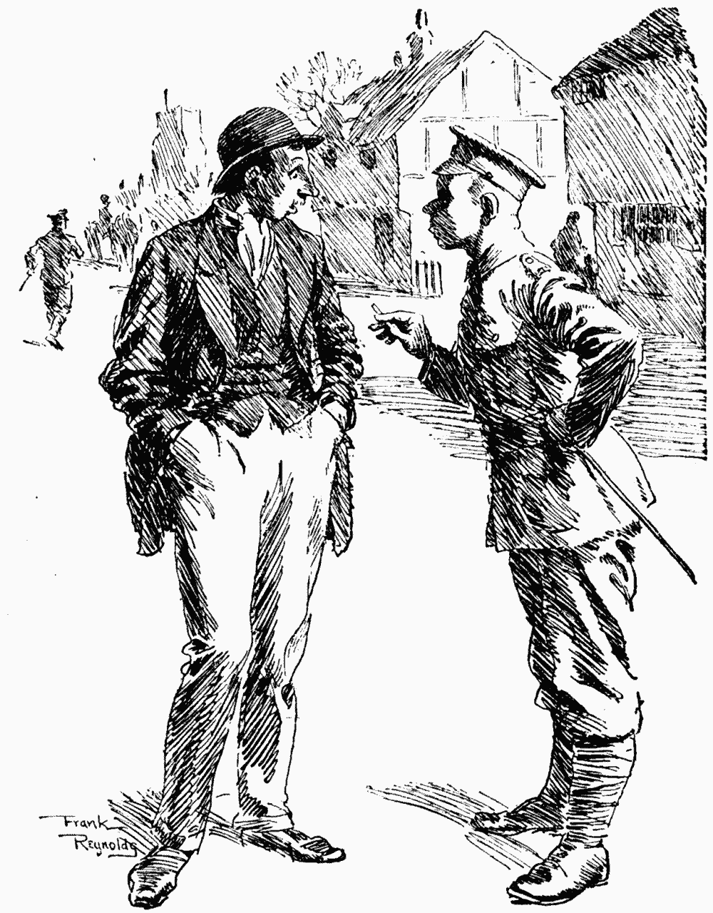 "Cheer-o, Bert!" said a refined voice just behind my ear, and at the same moment a walking-stick playfully tapped the head of the young fellow sitting next to me. My neighbour faced about, kicked me on the shin, dug the point of his umbrella into my calf, knocked off my pince-nez with his newspaper, and spread himself over the back of the seat.