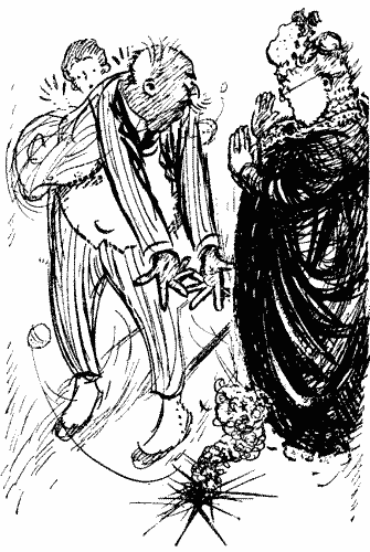 I decided to go home by bus. My season-ticket had expired painlessly the previous day, and twice already that morning I had had to satisfy the curiosity of the railway officials as to my name and address. Although I had explained to them that I was on half-salary and promised to renew business relations with the company as soon as the War was over or Uncle Peter died—whichever event happened first—they simply would not listen to me, and hence my decision to adopt some other means of transport. I signalled to a bus to stop, and, as the driver, seeing my signal, at once put on his top speed, I just managed to fling myself on to the spring-board as the vehicle tore past.