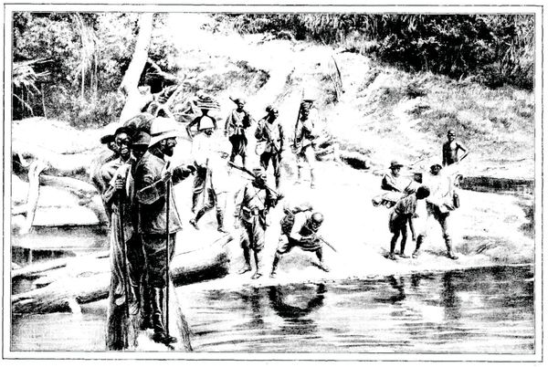 Un détachement d'infanterie coloniale traverse le Rienana. (D'après une photographie.) 563