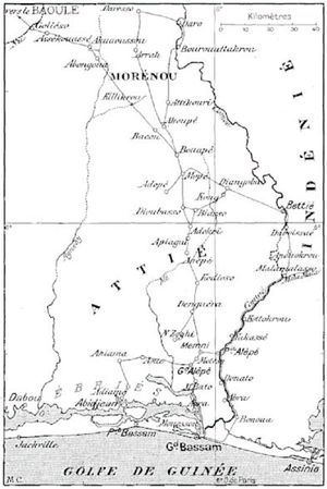 Note 4: Je ne puis cependant oublier les bons soins de M. Vaillant, constructeur et directeur du warf de Grand-Bassam, qui fut toujours pour moi un excellent ami.[Retour au texte principal]