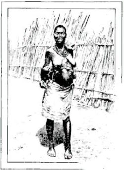 Note 3: Il m'a été donné d'observer très fréquemment dans la forêt, surtout aux environs de Adokoï, Mopé, l'affection déjà signalée sous le nom de «goundou ou anakhré», par le Dr Maclaud. Le malade qui en est atteint présente une tumeur osseuse de chaque côté de la racine du nez; cette tumeur, augmentant peu à peu de volume, en arrive à obstruer quelquefois la vision. L'origine et la cause de cette affection sont encore inconnues des indigènes, qui ne paraissent pas la redouter et se contentent d'en rire.[Retour au texte principal]