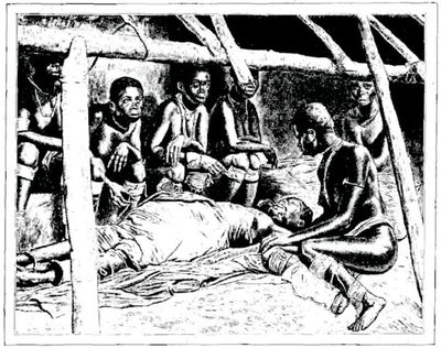 Les cercueils sont faits d'un tronc d'arbre creusé, et recouverts d'un drap. (D'après une photographie.) 549