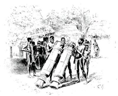 Tapant à coups redoublés sur un long bambou, les Tanala en tirent une musique étrange. (D'après une photographie.) 560