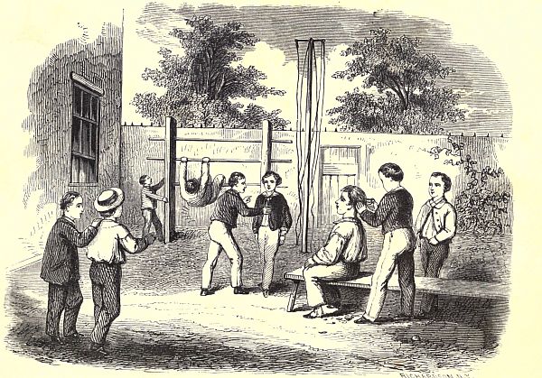 "My dear boy," said his mother, returning the caress, "there is One whom you grieve more than me. I wish you would think oftener of that. I know that different children require different sorts of punishment, and as neither your father nor I approve of beating you like a dog, and you say[15] that shutting you up with nothing to do only makes you worse, I shall advise him the next time you are naughty, to send immediately for a load of wood, and make you saw it all up into small pieces, or take you where some house is building and order you to run up and down a long ladder all day with a hod of bricks on your shoulder, or hire you out to blow the big bellows for a blacksmith. How do you think you would like that?"