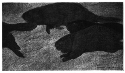 The beaver had a stick of alder in its mouth, to be used, no doubt, in some repairing of the dam. The Boy, all in gray as he was, and absolutely motionless, trusted to be mistaken for one of the gnarled, gray stumps with which the open space below the dam was studded. He had read that the beaver was very near-sighted, and on that he based his hopes, though he was so near, and the moonlight so clear, that he could see the bright eyes of the newcomer staring straight into his with insistent question. Evidently, the story of that near-sightedness had not been exaggerated. He saw the doubt in the beaver’s eye fade gradually into confidence, as the little animal became convinced that the strange gray figure was in reality just one of the stumps. Then, the industrious dam-builder began to climb out upon the crest of the dam, dragging his huge and hairless tail, and glancing along as if to determine where the stick which he carried would do most good. At this critical moment, when the eager watcher felt that he was just about to learn the exact methods of these wonderful architects of the wild, a stick in the slowly settling mud beneath his feet broke with a soft, thick-muffled snap.