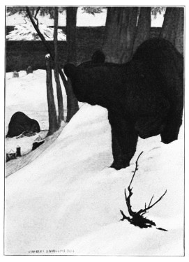 In ninety-nine cases out of a hundred, the most hot-headed and powerful bull of the caribou will shrink from trying conclusions with a full grown black bear. The duel, as a rule, is too cruelly one-sided. The bear, on the other hand, knows that a courageous bull is no easy victim; and the monster ambuscaded in the thicket had been waiting for one or both of the rivals to be disabled before making his attack. The approach of the young cow had been an unexpected favour of the Powers that order the wilderness; and in clutching his opportunity he had scornfully and absolutely put the white bull out of the reckoning.