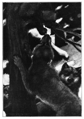 For several minutes the furious struggle went on, Sonny, apparently, getting all the worst of it. His back and shoulders were pouring blood; while his enemy showed not a hurt. Then suddenly the gray beast’s screeching took on a half strangling sound. With its mouth wide open it ceased to bite, though its fore paws raked and clawed more desperately than ever. Sonny’s relentless hold was beginning to throttle. His mouth was now too full of long fur and loose skin for him to bite clean through the throat and finish the fight. But he felt himself already the victor.