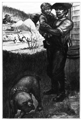 Hearing his name called, Sonny emerged from his kennel and came forward, but not with his wonted eagerness. Very soberly, but with prompt obedience he came, and thrust his massive head under Joe’s hand for the accustomed caress. But the caress was not forthcoming. Joe simply forgot it, so absorbed was he, his gaunt, weather-beaten face glowing and melting with smiles as he gazed at the child.