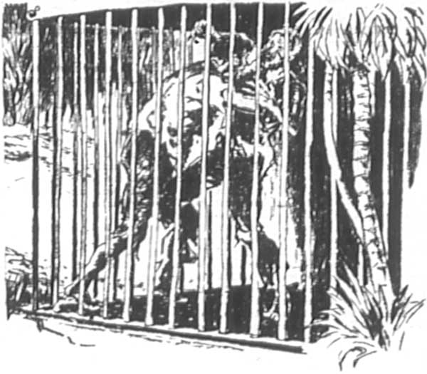 He removed completely one of the splintered bars from the broken cage. "I've got to leave you, old fellow," he told the cowering animal, "but I'll give you the run of the ship."