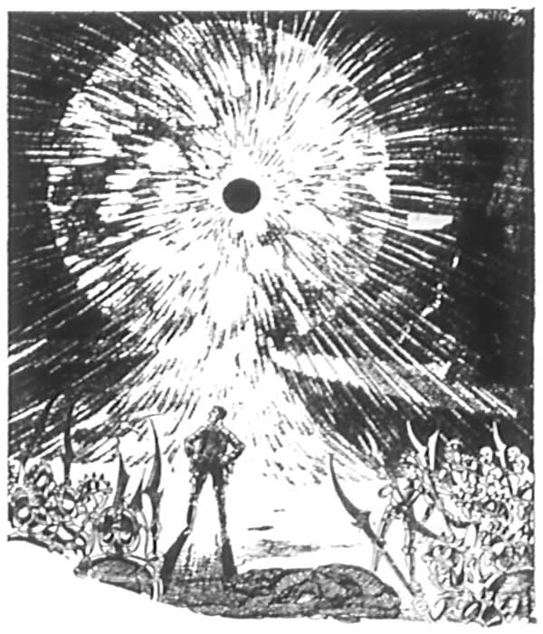 There was a multitude of faces, turned worshipping toward the sky. On one, who stood apart in tiny loneliness, his vision centered. He watched and strained his aching eyes until the figure was no more. Only the pale rose of a dying sun, and a torn, volcanic waste that tugged strangely at his heart.
