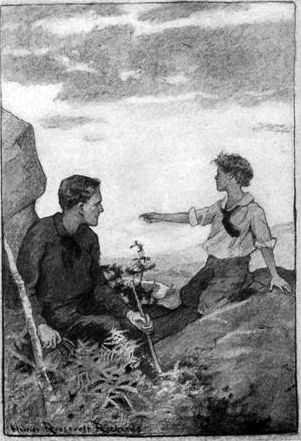 It was not the amazing view off over the valley, nor the impact against the old log that made his breath catch in his throat with a little surprised sound—it was the sudden apparition of a slim creature standing very straight on a huge rock! His first joyful thought was that it was a boy—a boy who could lead him back to the Wayside Hotel, for the youth wore soft leather breeches and a blouse, loosely belted at the waist, woolen golf stockings and soft elkskin shoes, but when the head turned, like a startled deer's, toward the unexpected sound, he saw, with more interest than disappointment, that the boy was a girl!