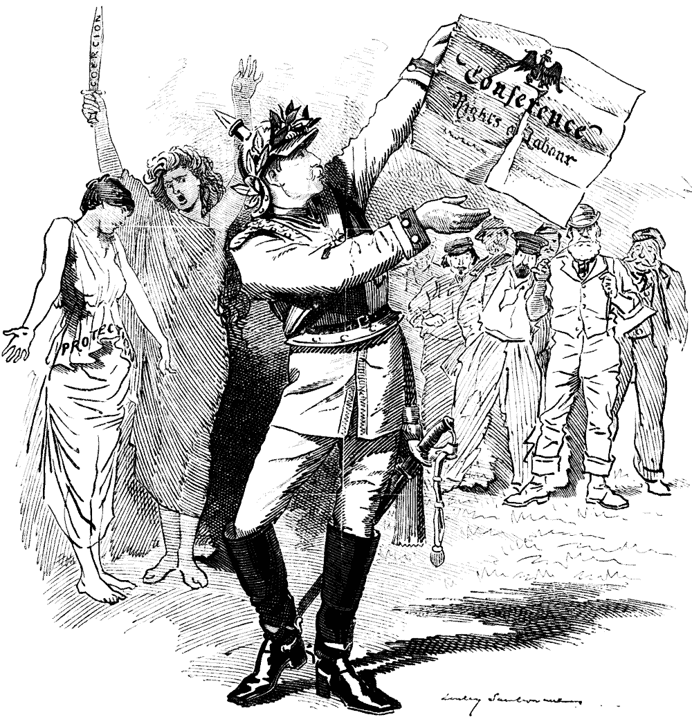 A sickly smile of abject acquiescence overspread the features of the now trembling Ministers. Their Chief noted it with a gloomy glare. Then with a furious gesture, he suddenly kicked a waste-paper basket into the air. "You may go!" he growled. They did not wait for a second permission. Swiftly, but obsequiously, they glided out of the room, and with traces of terror stamped on their blanched countenances, silently sought the little neighbouring Railway Station, and took the next train to London.