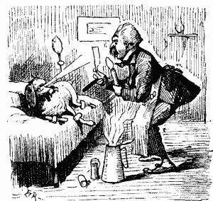 "Very sorry, Sir," said Mr. Ropes, from force of habit, "but it's not my fault. You've got a pimple there, and you jerked your head just as I was going over it. A little powder will put that all right."