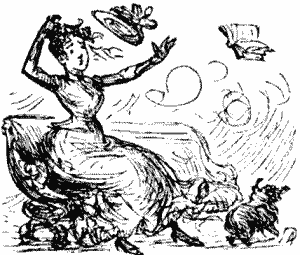 At the moment of going to press, they are all three still in the above condition. The dog, in the meantime, has been accidentally stuffed with the stuffing intended for the stuffer's Christmas goose. The goose was found, on carving, to be stuffed with several shilling shockers, which had been intended to pad the poodle.
