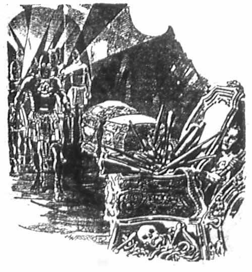 He rushed forward now, Loah still bravely at his side—past the fallen bodies, through the choking odor of burned flesh. Grabbing up one of the weapons that had been dropped, he thrust it into her hands and said: "Wait here. Stand them off if they come back." Then he was rushing up the side corridor toward a room where once, in a far-distant past, he himself had been confined.
