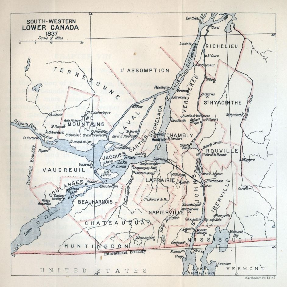 SOUTH-WESTERN LOWER CANADA, 1837 Map by Bartholomew. |