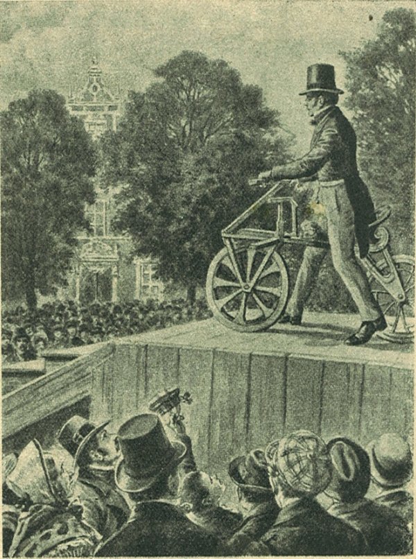 A kerékpár feltalálása az 1813-ik évre esik: ennek az évnek december hónapjában mutatta be Draisz Károly az orosz cárnak. Az első kerékpár szerkezete még nagyon kezdetleges volt, tehát nem is lépett vele a nyilvánosság elé. Négy esztendeig dolgozott és gondolkodott a javításán, végre 1817-ben elhatározta, hogy bemutatja az új közlekedő-eszköz gyakorlati használhatóságát. A Mannheimből Schwetzingenbe vezető négyórás utat az új találmány segítségével egy óra alatt akarta megtenni. Akik a tervről hallottak, nevetve fogadták: