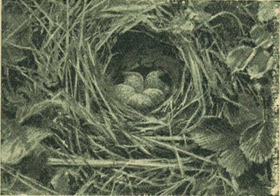 A fészek a fűben rejtőzködik és négy tojás van benne. Mivel a tojások színe a környezethez alkalmazkodik, a természetben csak nehezen lehet észrevenni.