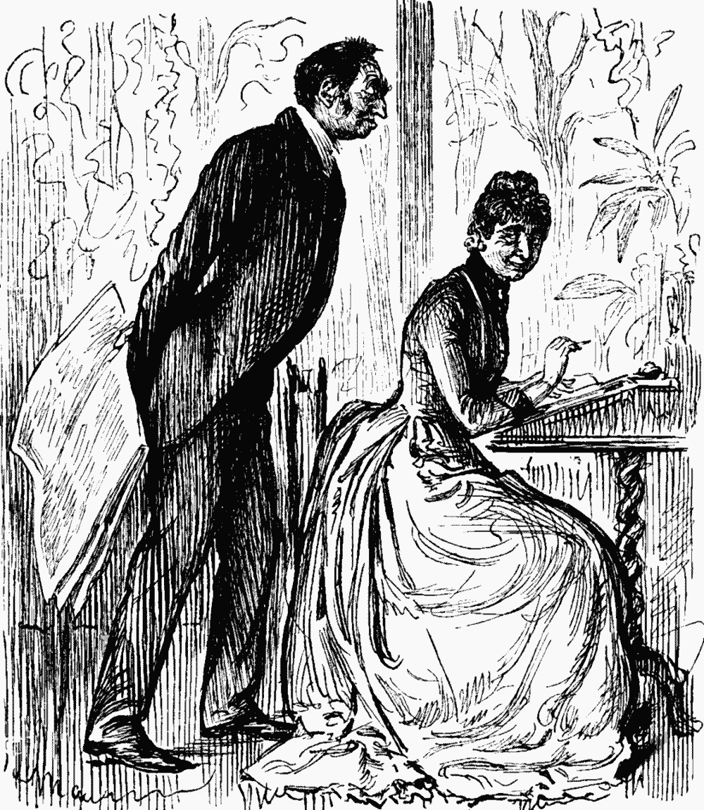 Elder Daughter (turning pale). Stop! What is this? "Very steady and respectable. Has been engaged to be married for past three years!" Call him engaging, indeed! No chance of it. The wretch!