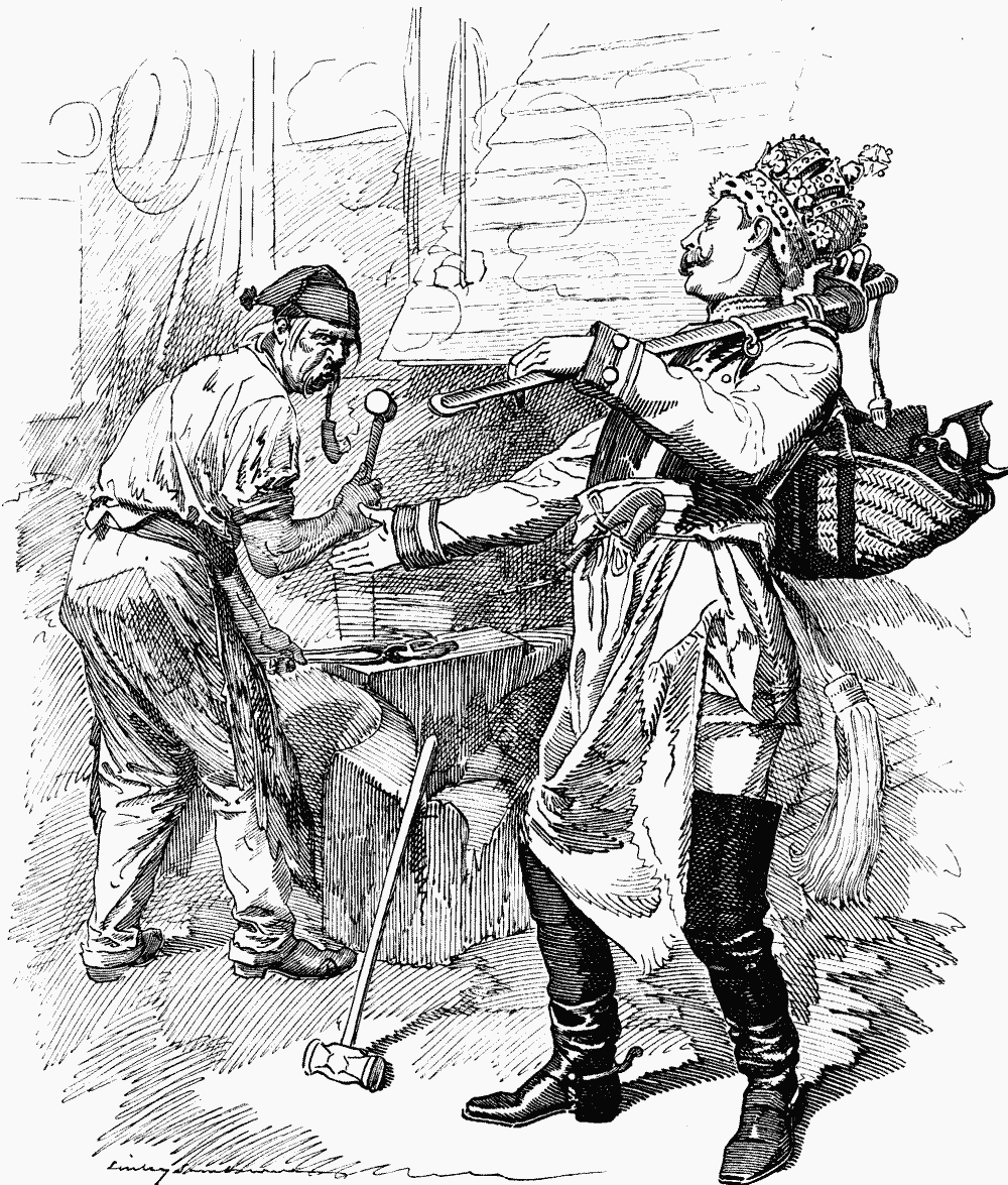 Tuesday.—Wilfrid Lawson sprang a mine to-night. House, as everyone knows, engaged for nearly fortnight in discussing question whether it should thank Judges for their services in connection with Parnell Commission. A desperate struggle finally resulted in decision to pass Vote of Thanks. Lawson wants to know whether Old Morality has conveyed the thanks to the Judges; and if so, what had they said in reply? Question put without notice. Rather[Pg 168] startles Old Morality. Fact is, never occurred to him that anything had to be done in supplement of passing Vote of Thanks. There it was; Judges might, in passing, call in and take it home with them; or it might be forwarded, at owner's risk, by Parcel-Post or Pickford's. Very awkward thing thus springing these questions on a Minister. Couldn't even, right off, say where the Vote of Thanks was. Gazed hopelessly at mass of papers on Clerk's table. Might probably be there. Perhaps not. Vote passed some days ago; desk cleared every morning. Old Morality moved restlessly on bench; looked picture of despair. Best thing to do, not to take notice of question; pretend not to hear it; but House laughing and cheering; all eyes bent on him; no escape. So, rising, holding on to table, putting on most diplomatic manner, and speaking in solemn tones, Old Morality said, "Mr. Speaker, Sir, it is no part of my duty to the Queen and country to convey to anybody a Resolution of this House."