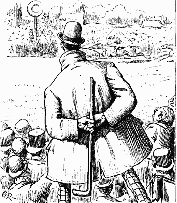 "Ah!" said J. G. Talbot, mournfully regarding him through his spectacles; "he's thinking of the Old 'un," meaning the late joke.