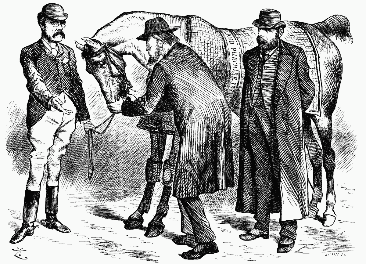 "Reminds me," said Admiral Field, "of his grandfather, General Picton, who fell at Waterloo. Remember him very well; was in charge of Brigade of Marines there, you know; attached to Picton's Division. Never look on Member for Leicester without thinking of my old comrade in arms;" and the sturdy salt brushed away the reluctant tear.