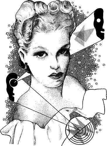 "For reading poetry, don't you think this dress is just the thing, this nice soft blue one that goes so well with your tan and shows your legs, which are really quite pretty, you know.... And your silver sandals and those silver pins ... just a touch of perfume.... That's right; and now a little lipstick. You do have a pretty smile.... There, that's right. Now stop admiring yourself and let's go."