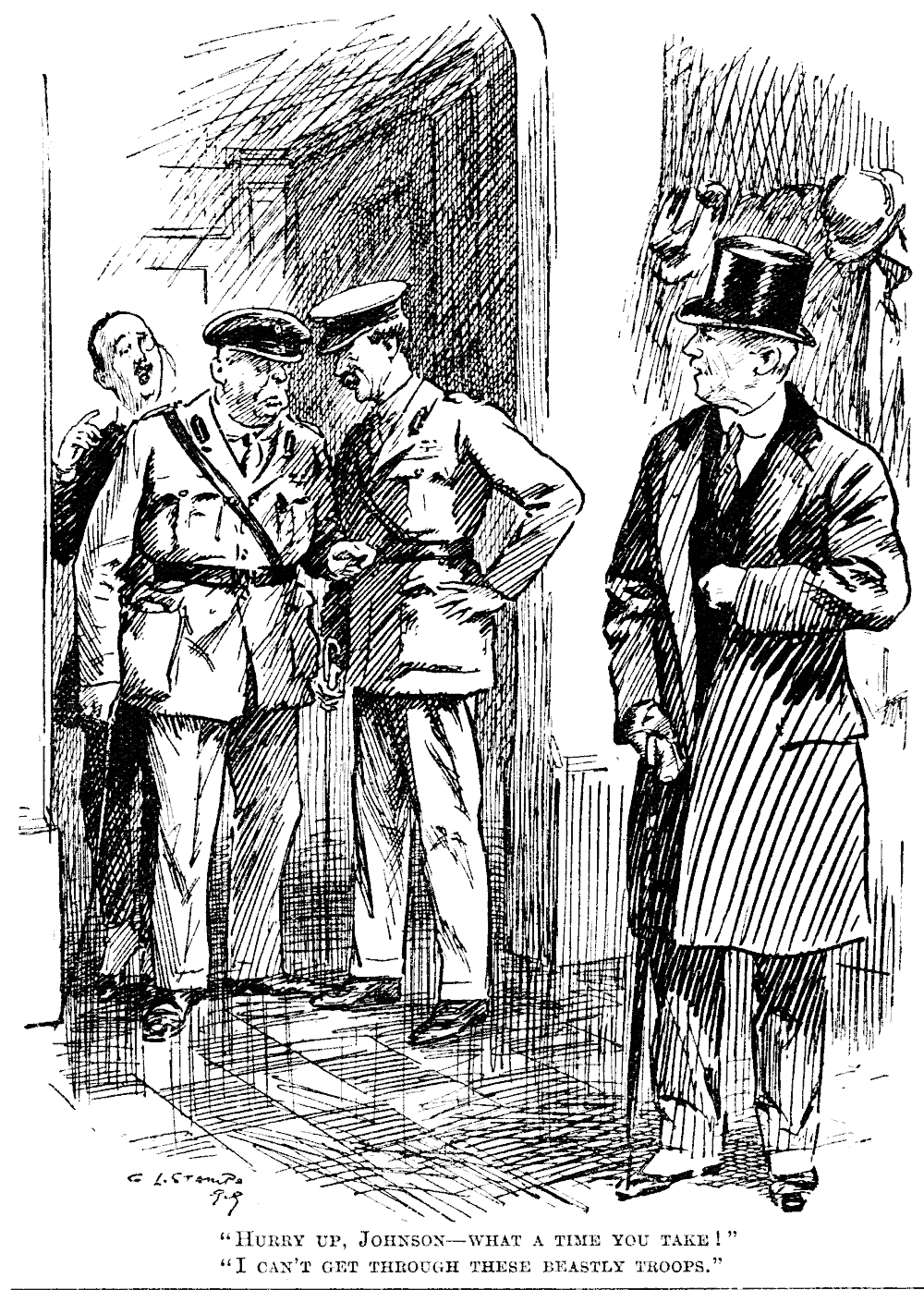 Viewed in their true perspective, these exhibitions of animal intelligence seem to indicate fruitful possibilities of the employment of our dumb friends to assist us in these trying times. Many years ago I remember reading of a baboon which discharged the duties of a railway porter at a station in Cape Colony with great efficiency. I have unfortunately mislaid the reference, but so far as I can remember no mention was made of wages or tips; consequently the importation and employment of skilled simian labour on a large scale might go a long way towards reducing the expenses of our railway system.