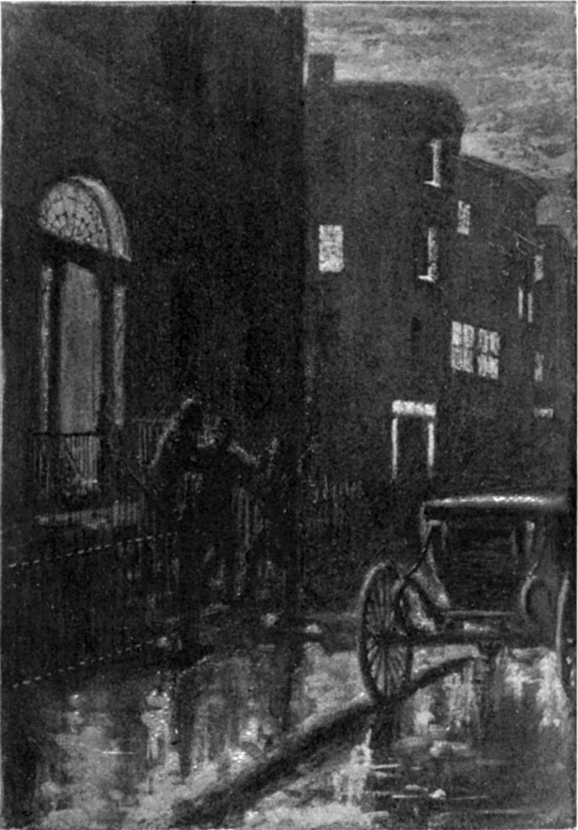 Through it they heard, sharp and sudden, with something inexplicably fearful about it, the patter of running feet. They had heard that sound often enough that night and the night before; but these feet stopped at their own door, and came up the steps, and the runner beat and pounded on the heavy panels.
