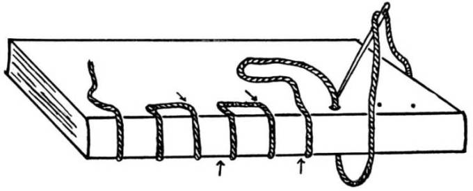 For the upright use a stick ½ in. square and about 12 in. long. Whittle the corners of the stick until it fits[Pg 111] firmly into the hole in the small board. Nail the small board to the large one.