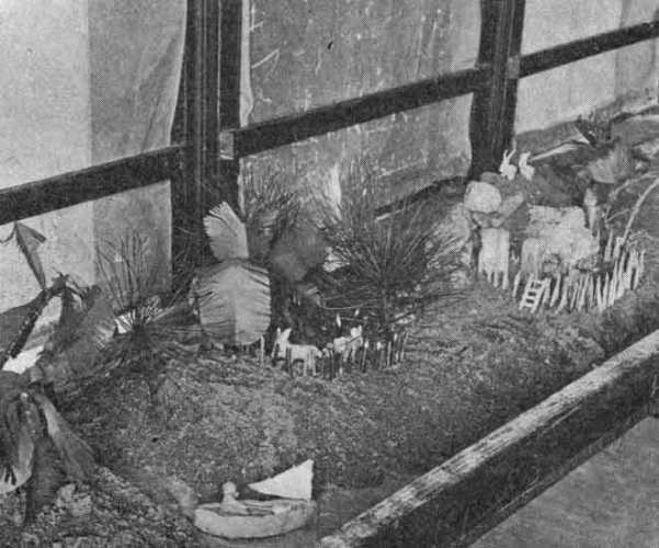 Christmas suggests the making of toys and all sorts of things suitable for gifts. If the work centers around the Christmas tree, it offers opportunity for coöperation in making trimming such as paper chains, pop-corn strings, etc., as well as individual gifts. If a tree is not obtainable, a box may be dressed up in imitation of Santa's sleigh drawn by cardboard reindeer. Whatever else is done in honor of the visit of St. Nicholas, the spirit of giving should be cultivated by making gifts to some younger or less fortunate groups. Picture books may be made for sick children, doll furniture and other toys for the orphans' home or some family of unfortunates. A sack might arrive a week or two before Christmas[Pg 113] accompanied by a telegram from Santa requesting contributions to help him out in some specific way and stating that it would be called for at a certain time. When a "real Santa" calls for the sack, he may leave in its place another containing some unexpected treat for the children themselves. The gifts which the children contribute should be of their own making, that they may have a full sense of real giving and not merely the pleasure of delivering the parcels mother has provided.