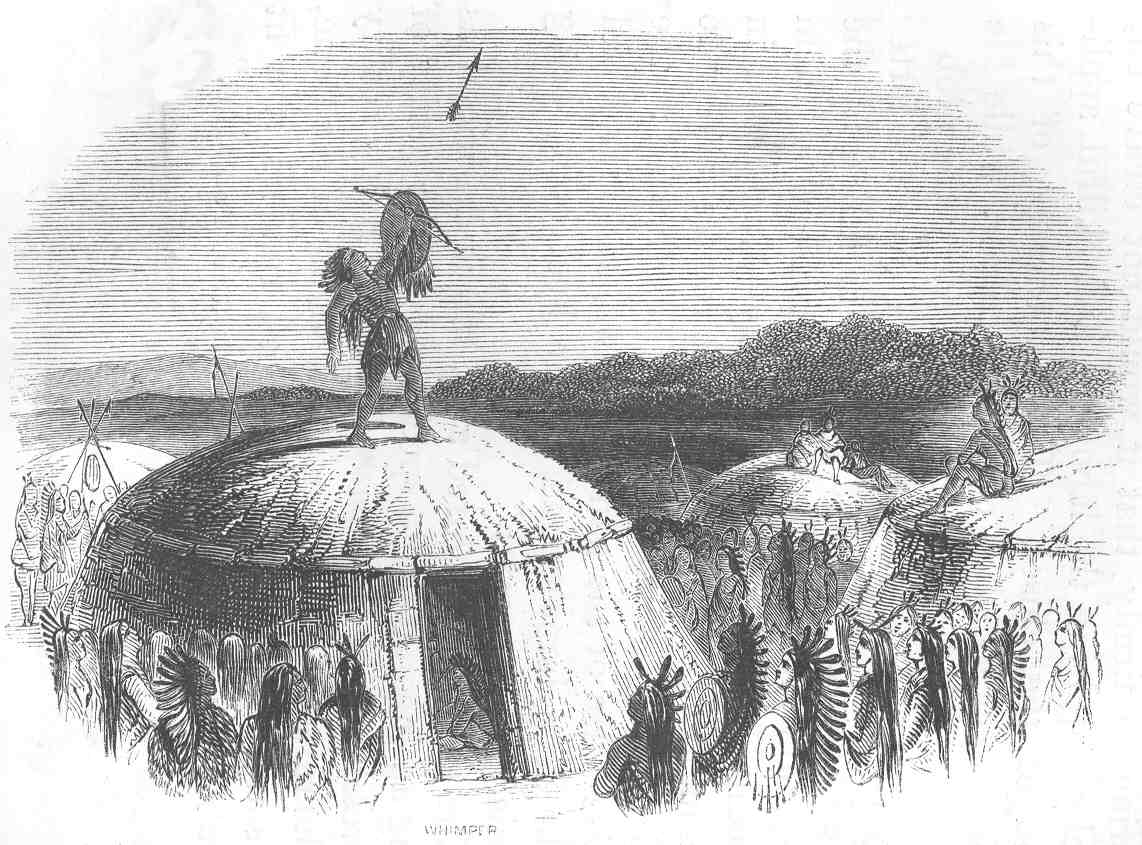 Uncivilized nations often entertain the absurd notion that certain individuals can command the rain whenever they please. Much honour is shown to persons supposed to possess this power, for they are considered as having some mysterious intercourse with heaven. Catlin gives a striking instance of this superstition as it exists among the Mandans of North America. These people raise a great deal of corn; but their harvests are sometimes destroyed by long-continued drought. When threatened with this calamity, the women (who have the care of the patches of corn) implore their lords to intercede for rain; and accordingly the chiefs and doctors assemble to deliberate on the case. When they have decided that it is necessary p. 206to produce rain, they wisely delay the matter for as many days as possible; and it is not until further urged by the complaints and entreaties of the women, that they begin to take the usual steps for accomplishing their purpose. At length they assemble in the council-house with all their apparatus about them—with abundance of wild sage and aromatic herbs, to burn before the “Great Spirit.” On these occasions the lodge is closed to all except the doctors and some ten or fifteen young men, the latter being the persons to whom the honour of making it rain, or the disgrace of having failed in the attempt, is to belong.