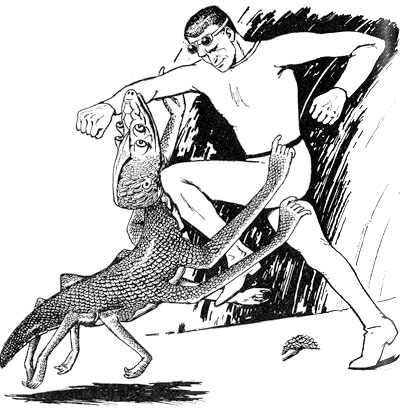 At this stage of the game, it would be suicide to let the Nipe get close. He couldn't fend off eight grasping hands with his own two. He leaped to one side, and the Nipe got his first surprise in ten years when Stanton's fist slammed against the side of his snouted head, knocking him in the opposite direction from that in which Stanton had moved.