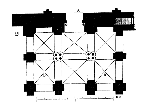 Si maintenant nous prenons un édifice ne possédant qu'un seul vaisseau voûté, comme la salle synodale de Sens, bâtie en même temps que le choeur de Beauvais, nous verrons que l'architecte a procédé d'après une méthode semblable à celle que nous venons de décrire.