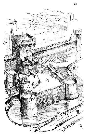 Les palais des seigneurs suzerains laïques forment au milieu des villes où ils sont situés une sorte d'oppidum, de lieu à la fois fortifié et sacré, comme était l'acropole des villes grecques. C'est dans le palais suzerain que sont conservées les reliques les plus précieuses et les plus vénérées par le peuple; c'est là que sont déposés les chartes, les trésors; c'est là que se tiennent les cours plénières, que siégent les parlements, que se passent les fêtes à l'occasion du mariage des princes, des traités. Quant aux palais des évêques, ils ont un autre caractère qui mérite de fixer l'attention des archéologues. Situés dans le voisinage des cathédrales (ce qui est naturel), ils sont presque toujours bâtis le long des murailles ou sur les murailles mêmes de la cité, et peuvent contribuer à leur défense au besoin. Ce fait est trop général pour qu'il n'ait pas une origine commune. En premier lieu, il prouverait ceci: c'est que les évêchés se sont établis, primitivement, sur quelque castellum tenant aux murs des villes gallo-romaines; en second lieu, que la construction de ces palais a dû précéder la construction des cathédrales et déterminer leur emplacement. En effet, on ne s'expliquerait pas comment la plupart de nos plus anciennes cathédrales, rebâties plusieurs fois, toujours sur le même emplacement, depuis les VIIe et VIIIe siècles, celles de Paris, de Meaux, de Bourges, d'Amiens, de Soissons, de Beauvais, de Laon, de Senlis, de Noyon, de Langres, d'Auxerre, du Mans, d'Évreux, de Narbonne, d'Alby, d'Angoulème, de Poitiers, de Carcassonne, de Limoges, et tant d'autres, s'élèvent plutôt près des anciens remparts qu'au milieu même de l'enceinte des cités. Les villes gallo-romaines possédaient, ou un capitole, ou au moins un castellum, le long d'un des fronts des remparts, comme sont encore nos citadelles modernes; c'est au milieu de ce capitole gallo-romain, ou dans un de ces réduits voisins des remparts, que s'implantent les premiers évêchés. N'oublions pas qu'à la fin du VIe siècle, «les évêques étaient les chefs naturels des villes; qu'ils administraient le peuple dans l'intérieur de chaque cité; qu'ils le représentaient auprès des barbares; qu'ils étaient ses magistrats en dedans, ses protecteurs au dehors 14.»