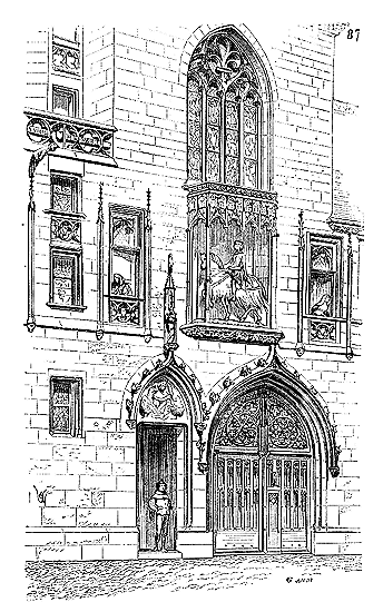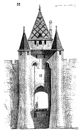 Nous n'avons présenté dans cet article, jusqu'à présent, que des exemples tirés de monuments religieux; cependant il n'en faudrait pas conclure que les architectes du moyen âge ne songeaient pas aux proportions, lorsqu'ils élevaient des édifices civils. Loin de là: nous les voyons suivre leurs principes de proportions par voie géométrique, dans des monuments d'utilité publique, dans des maisons, dans des ouvrages même de défense; car ils ne pensaient pas qu'une tour se défendît plus mal contre des assaillants parce qu'elle était établie sur d'heureuses proportions. Et c'est en cela que nous n'hésitons pas à donner à ces maîtres trop méconnus un brevet d'artiste. Certes il était plus aisé de mettre un monument en proportion par des combinaisons de nombres, indépendamment de l'échelle humaine, que de satisfaire les yeux en observant la loi de l'échelle humaine. Alors les combinaisons de nombres ne pouvaient plus être appliquées, car il fallait toujours partir d'une unité invariable, la taille de l'homme, et cependant trouver des rapports harmonieux: on comprend comment, dans ce dernier cas, la méthode géométrique devait être préférée à la méthode arithmétique.
