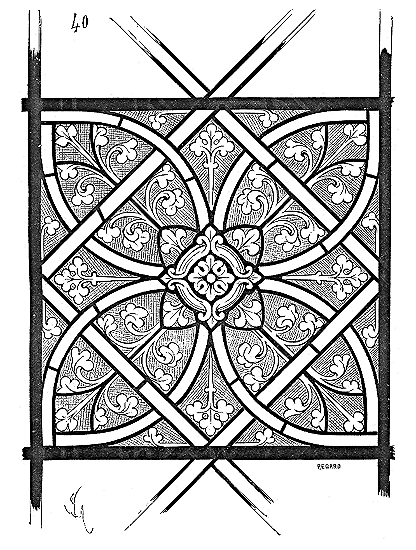 On a vu dans la figure 35 comment les constructeurs anglais, ayant adopté une seule courbe composée pour tous les arcs d'une voûte, appliquaient même parfois cette courbe au formeret, et par suite à l'archivolte de la fenêtre ouverte sous ce formeret. C'est un procédé simplificateur de construction des voûtes, qui n'exigeait qu'une seule épure pour tous les arcs, qui explique pourquoi beaucoup de ces archivoltes des fenêtres appartenant à des édifices voûtés au XIVe siècle sont obtenues au moyen de courbes composées. Il y a, dans cette forme observée par tous, ceux qui ont visité l'Angleterre, non pas un caprice, une question de goût, mais l'application rigoureuse d'un système suivi, comme nous venons de le démontrer, avec un esprit méthodique rigoureux dans ses déductions. Une fois la courbe admise par une nécessité de construction, on s'y habitua et l'on s'en servit dans des circonstances non commandées par le système de structure.