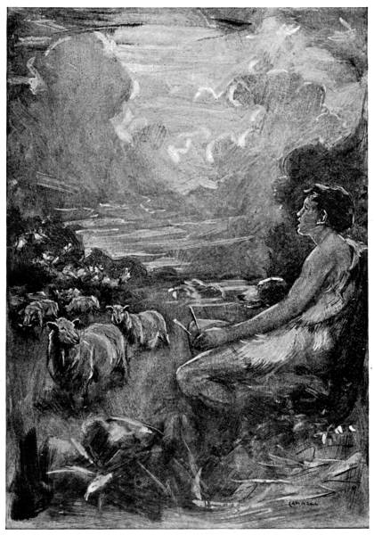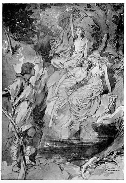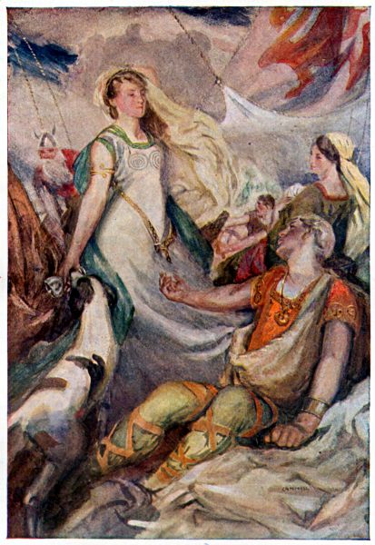 On the following day Jud-Hael made public his dream, but, like Nebuchadnezzar of old, he could find no one to interpret it, so he turned to the bard Taliesin as to another Daniel. Taliesin, says the legend, then an exile from his native land of Britain, dwelt on the seashore. To him came the messenger of Jud-Hael and said: “O thou who so truly dost interpret all things ambiguous, hear and make clear the strange vision which my lord hath seen.” He then recounted Jud-Hael’s dream to the venerable bard.