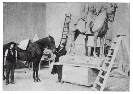 And it was at the end of this crooked street, through a lane that led into a half court flanked by a row of studio buildings, and up one pair of dingy waxed steps, that I found a door bearing the name of the author of the following pages—his visiting card impaled on a tack. He was in his shirt-sleeves—the thermometer stood at 90° outside—working at his desk, surrounded by half-finished sketches and manuscript.