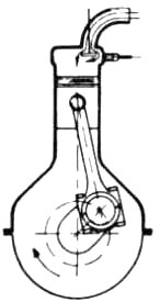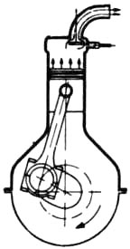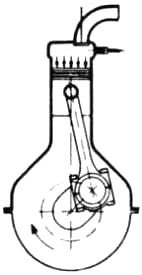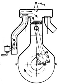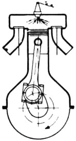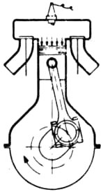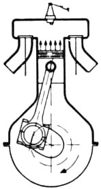[31] A 2-stroke cycle engine completes 360° of crankshaft rotation in what it takes a 4-stroke cycle engine 720° to accomplish. A 3-cylinder two-stroke cycle engine therefore has the same capacity to do work as a 6-cylinder four-stroke cycle engine. For this reason the former type of engine is both more compact and lighter than the latter type.