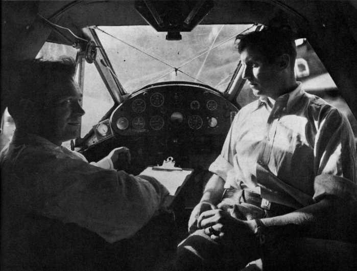 Figure 14.—Walter E. Lees, Packard chief test pilot (in cabin) and Frederic A. Brossy, Packard test pilot, before taking off on their world’s record, nonrefueling, heavier-than-air aircraft duration flight, which lasted 84 hours, 33 minutes, and 1¼ seconds. (Smithsonian photo A48446E.)