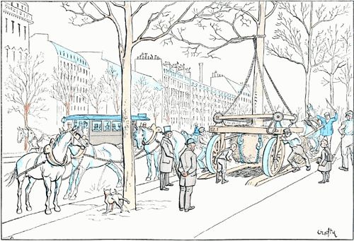 A peine les chevaux commençaient à s'habituer aux tramways à vapeur, à leur fumée et à leurs sifflets, qu'on a jugé à propos d'employer l'électricité.—C'était sans doute dans une bonne intention, puisque ces nouveaux véhicules circulent sans bruit et sans fumée. N'empêche qu'ils causent à la cavalerie parisienne une terreur invincible.—Les animaux, qui ne sont qu'à moitié bêtes, se méfient toujours de ce qu'ils ne s'expliquent pas, et la vue de cette voiture que rien d'apparent ne met en mouvement, et qui remue cependant, leur inspire une méfiance qui ne me paraît pas complètement inintelligente.
