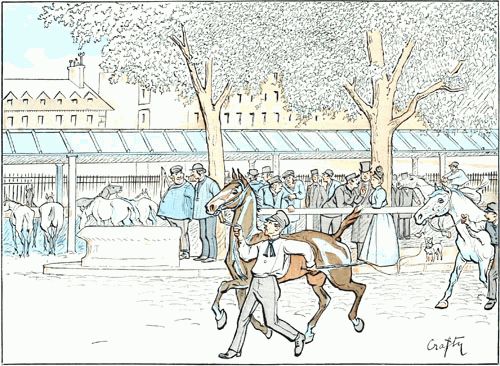 Le public spécial de cet établissement attend toujours la chance de trouver au même prix (trois cents francs) une nouvelle plaisanterie, revendue soixante mille francs, après avoir gagné toutes les courses dans lesquelles l'avait fait partir son heureux acquéreur. L'occasion ne s'est pas renouvelée, que je sache. Mais, comme les petits marchands de chevaux sont restés les clients attitrés de la maison, il en résulte pour le gros public la certitude de ne jamais payer un cheval au delà de sa valeur, les marchands arrêtant net leurs enchères quand ils ne voient plus la possibilité d'un bénéfice à réaliser promptement.