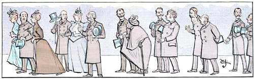 Le moment est venu d'acquitter le montant des contributions mondaines.—Les gens prévoyants n'ont pas attendu le 1er janvier pour expédier leurs étrennes, mais les retardataires qui ont attendu jusqu'au dernier moment s'empilent chez le confiseur et se bousculent pour obtenir le sac obligatoire. Le fâcheux est qu'en ces moments extrêmes les approvisionnements des spécialistes en renom sont souvent épuisés, et que pour satisfaire «aux exigences du public», ils se trouvent parfois dans la nécessité de substituer à leurs produits habituels les bonbons vénéneux et les chocolats frelatés de l'épicier le plus proche.—«Tarde venientibus ossa», a dit le poète lors de jours de l'an oubliés.